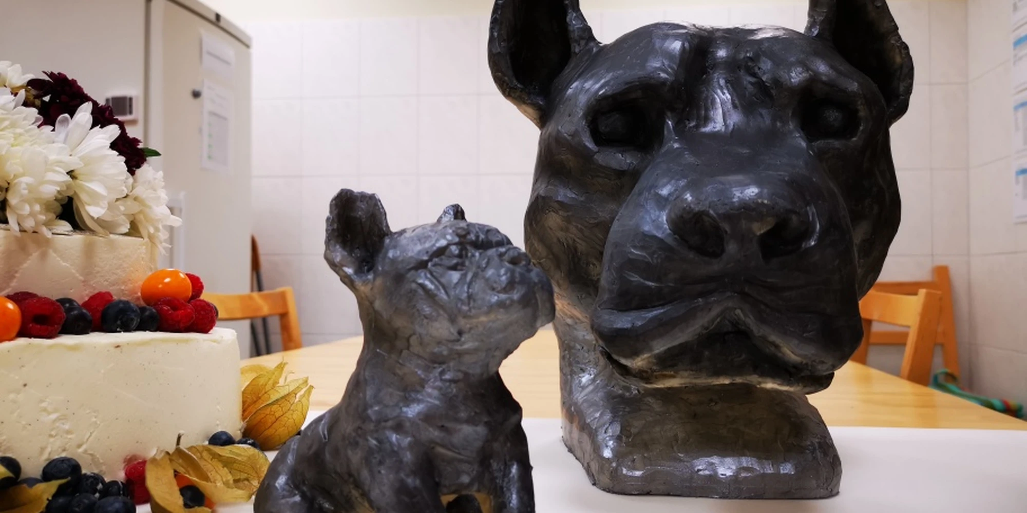 Ihre eigenen Erfahrungen mit dem „schwarzen Hund“ hat eine Patientin unserer Klinik in Form dieser wunderschönen Figuren dargestellt und uns zusammen mit ihrem Abschiedsgeschenk – einer unfassbar leckeren Waldbeeren-Sahne-Torte – überreicht. Wir bedanken uns ganz herzlich für dieses Geschenk und wünschen ihr alles erdenklich Gute, vor allem, dass der „große schwarze Hund“ uns allen nur in Gestalt eines kleinen süßen Welpen begegnet!